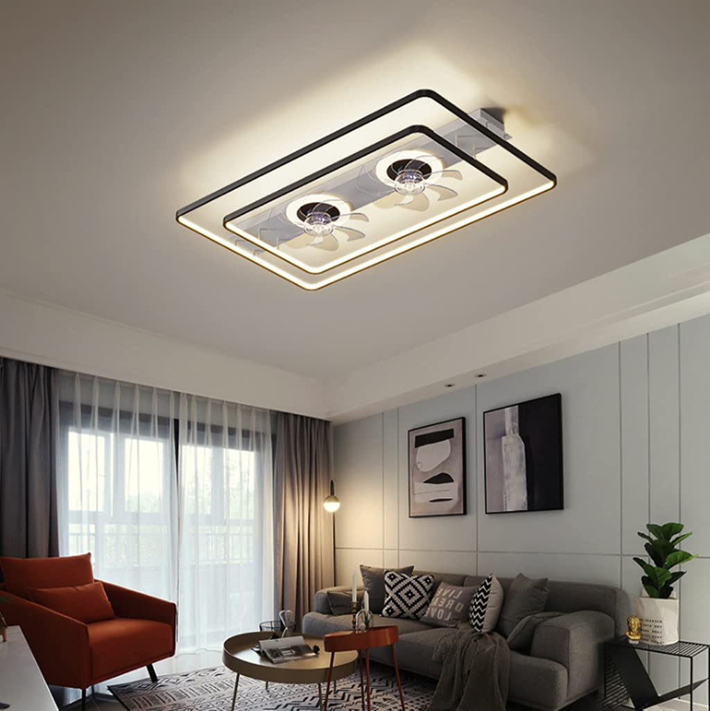 Led Ceiling Fan With Lamp Modern Dimmable 98 W Fan Ceiling Light Double Fan Design Ceiling Lamp Dining Table Living Room Bedroom Fan Lighting With Remote Control Diameter 90 Cm Black
